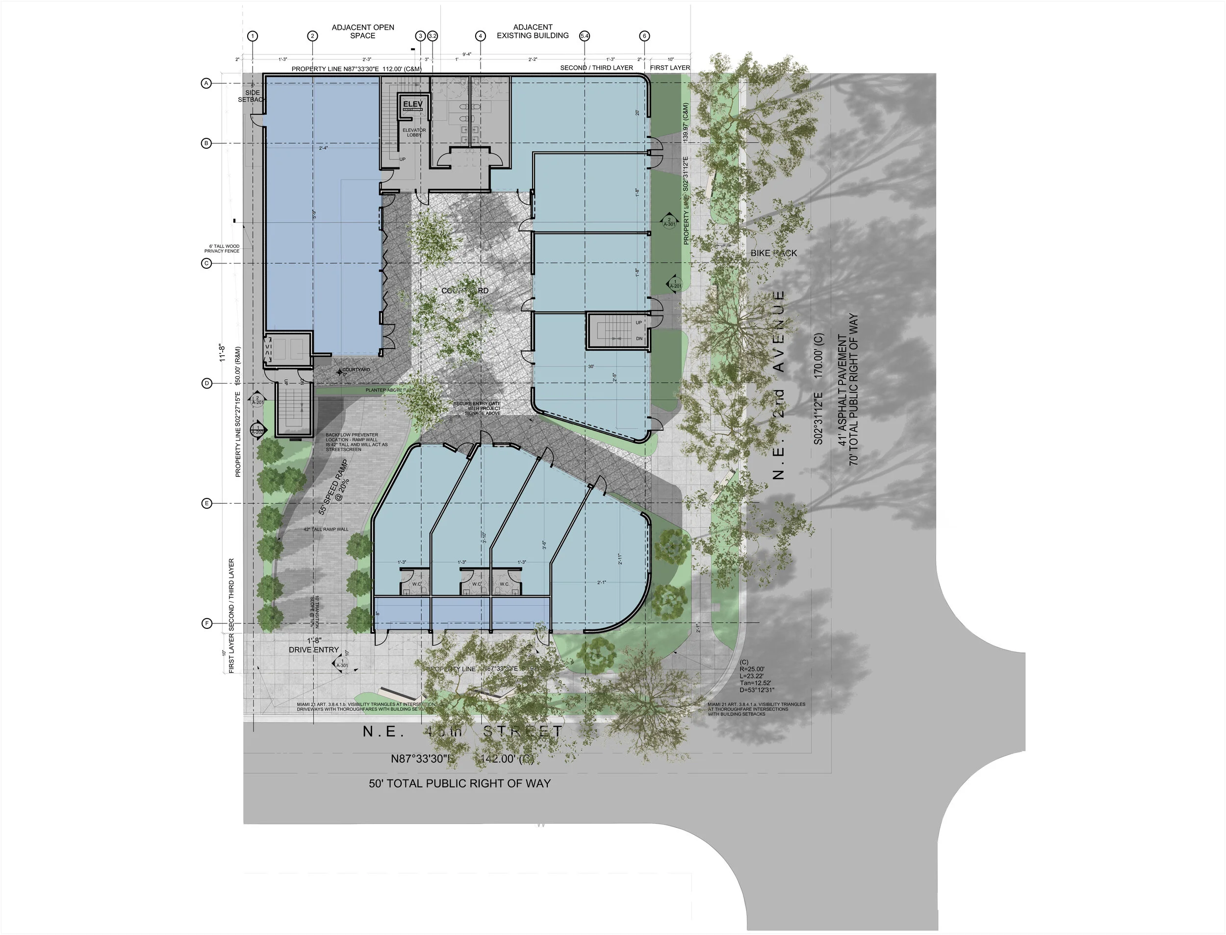 The project will offer small scale retail and dining options positioned around an internalized open air courtyard. Anticipated tenant spaces will range between 500-1,500 square feet. Frontages facing the commercial avenue, NE 1st Avenue, will generally accommodate larger retail tenants, while the tenants fronting the residential street, NE 1st Avenue will be convenience centric, focusing on neighborhood desired services and amenities.